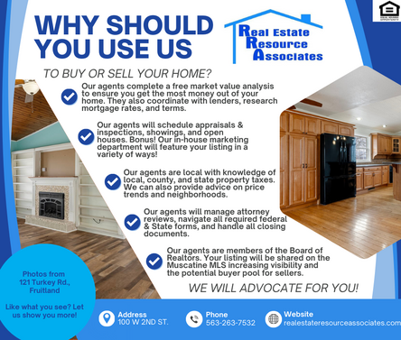 Real Estate Resource Associates | 100 W 2nd Street, Suite 1| Muscatine, Iowa 52761 | 563-263-7532